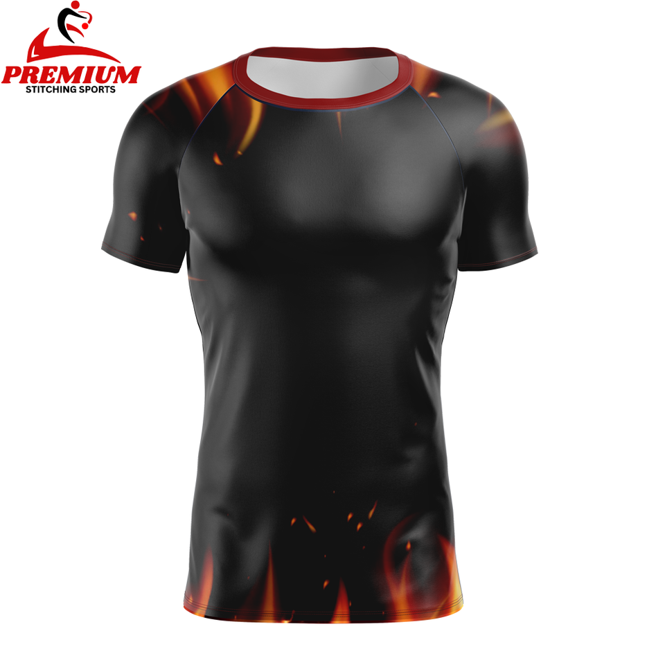 เสื้อรัดกล้ามเนื้อแขนสั้นแบบซับลิเมชั่น พิมพ์โลโก้ของคุณเอง สำหรับผู้ชาย