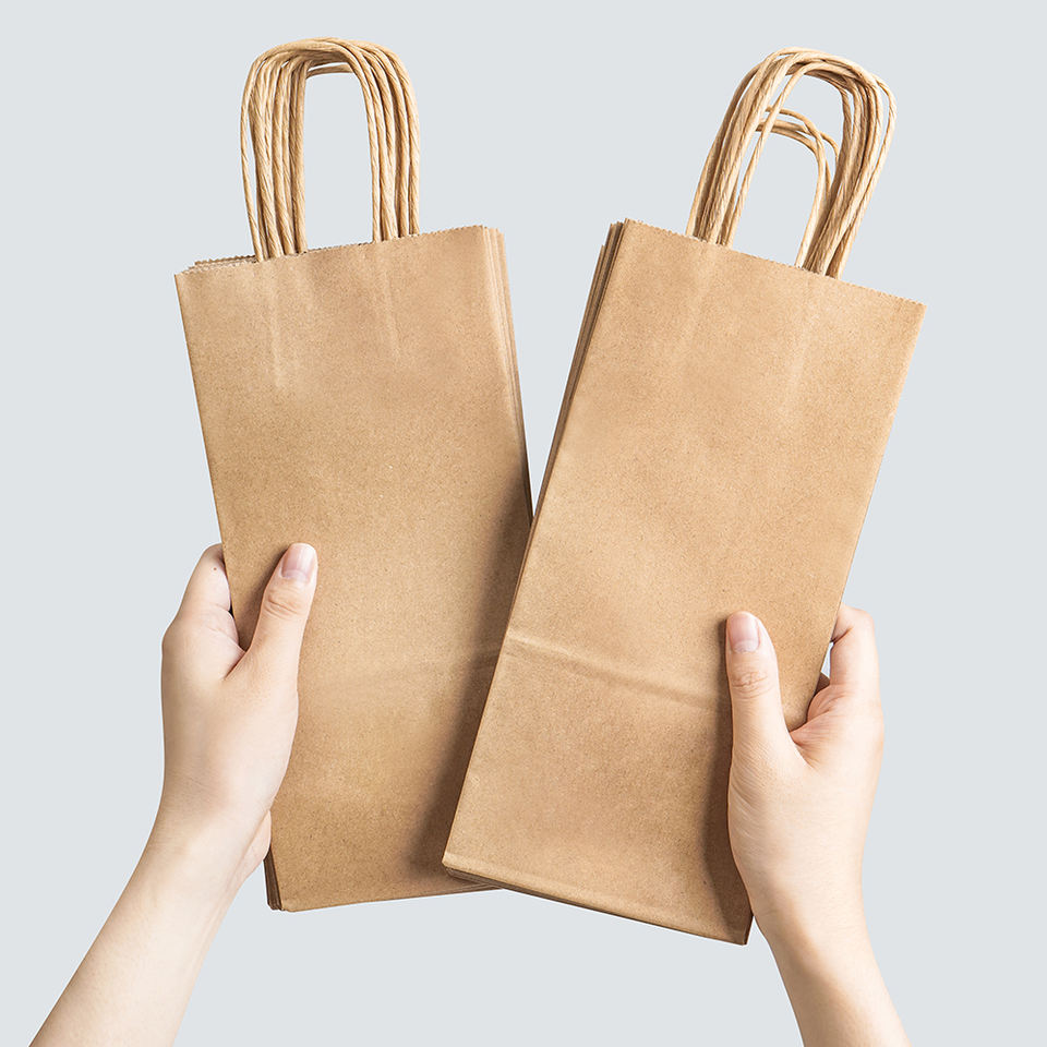 ถุงกระดาษคราฟท์แบบใช้แล้วทิ้งพิมพ์โลโก้ได้ตามต้องการ พร้อมหูหิ้ว สำหรับใส่แก้วชานม กาแฟ น้ำผลไม้ แบบนำกลับบ้าน