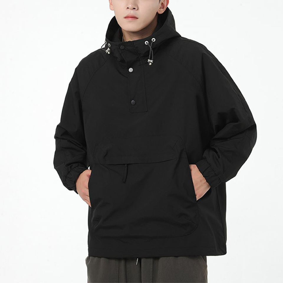 แจ็กเก็ตกันฝนสำหรับผู้ชายเสื้อกันลมกันน้ำทำจากโพลีเอสเตอร์เครื่องแต่งกายแนวสตรีทแบบกำหนดเอง