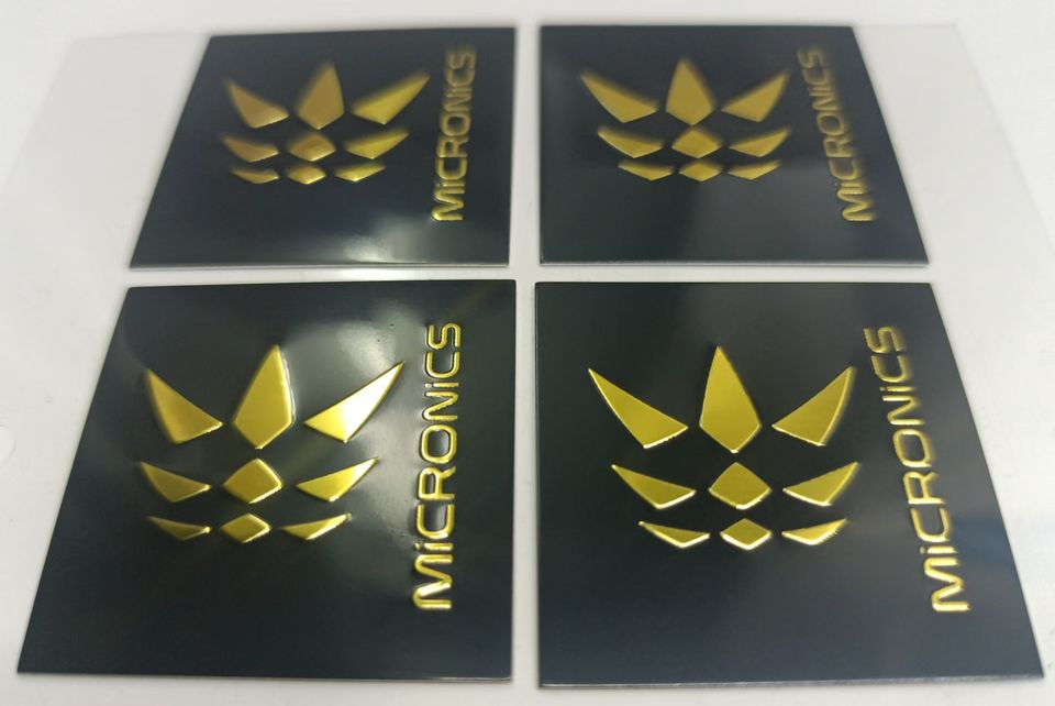 Customized 0.5MM Double-Sided Gold Embossed Printed Aluminum Sheet Metal Label Sticker Spray Painted Embossed Design Both Sides