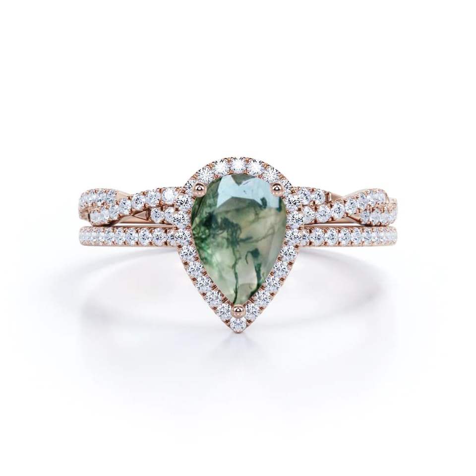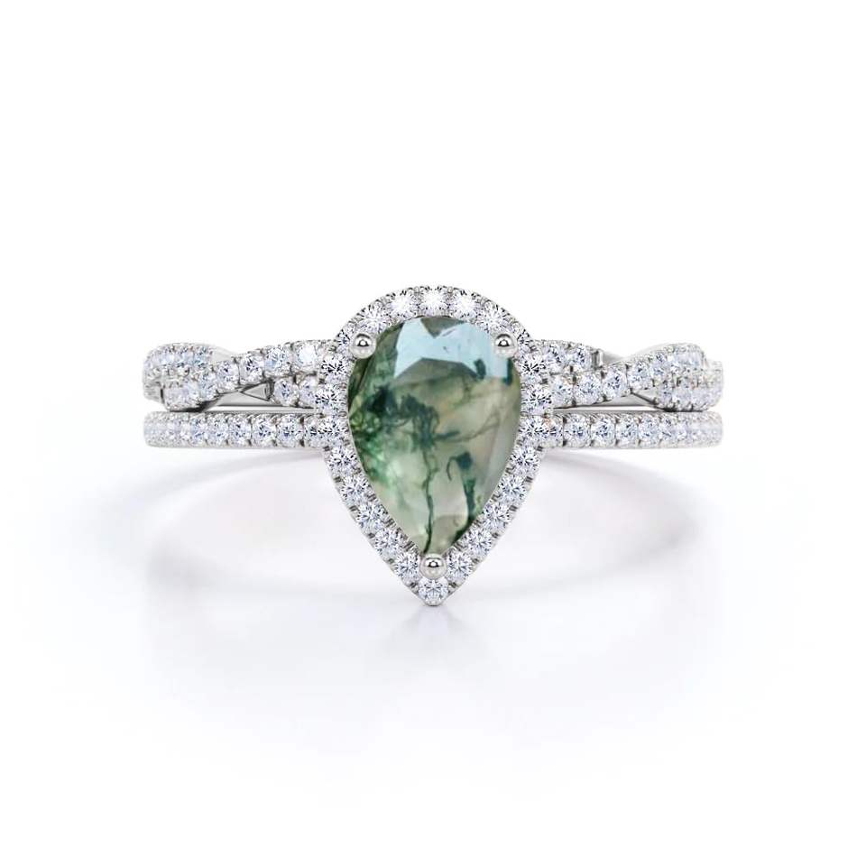 ชุดเครื่องประดับเจ้าสาวอัญมณีโมราและมอสสีขาวสำหรับงานแต่งงานขนาด1.5กะรัตลูกแพร์เคลือบสีทองขาวสำหรับงานแต่ง