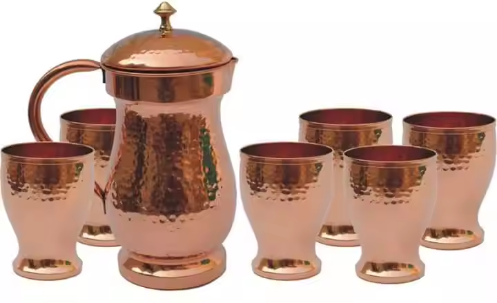 เหยือกทองแดงมีดีไซน์แบบตอกพร้อมที่จับสำหรับงานปาร์ตี้