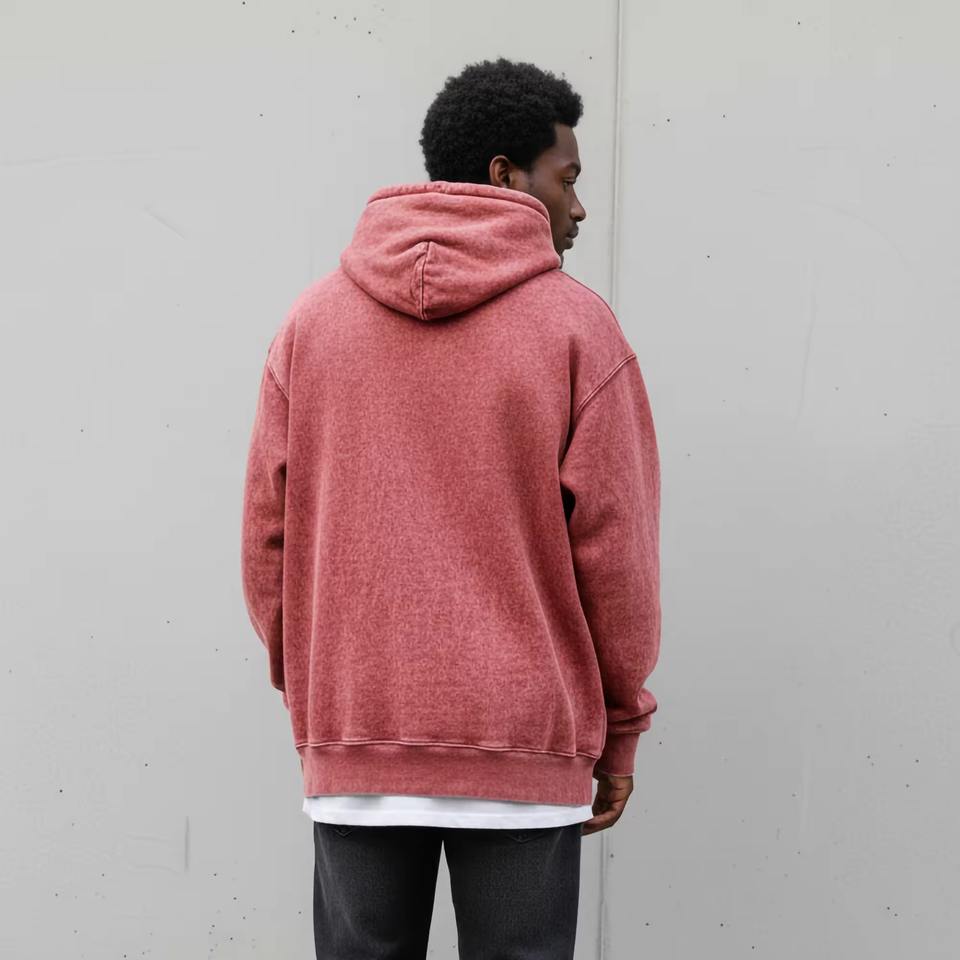 เสื้อฮู้ดดี้ผ้าฝ้ายแท้ 100% แบบสั่งทำพิเศษสำหรับฤดูใบไม้ร่วง ทรงหลวม ไหล่ตก ล้างสีแบบแอซิดวอช มีฮู้ดแบบตั้ง รีดร้อน สำหรับผู้ชาย