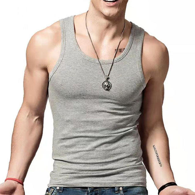 เสื้อกล้ามผู้ชายผ้าคอตตอนแนวสปอร์ตเสื้อหนาและระบายอากาศได้ดีพิมพ์โลโก้ได้ตามต้องการ100%