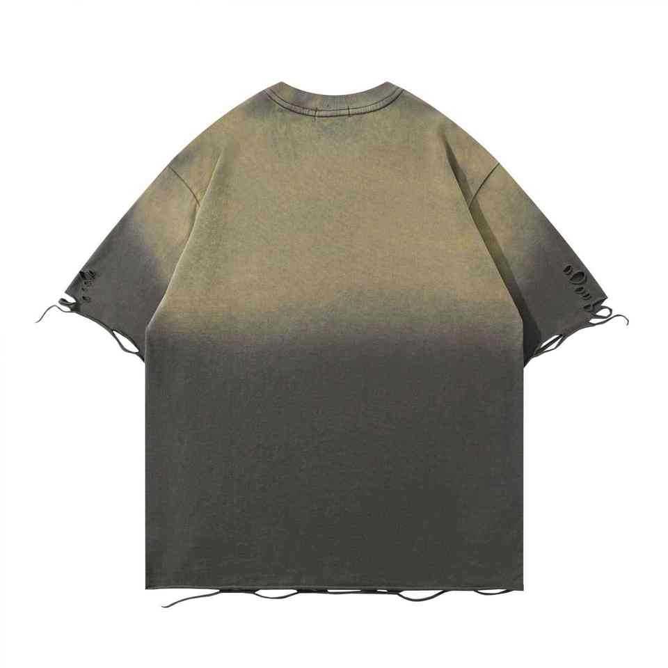 เสื้อยืดคอกว้างทรงโอเวอร์ไซส์ผ้าฝ้าย 100% ระบายอากาศได้ดี สไตล์สตรีทแวร์ ล้างสีแบบแอซิดวอช สำหรับผู้ชาย ตัดเย็บขอบดิบ ออกแบบได้ตามต้องการ
