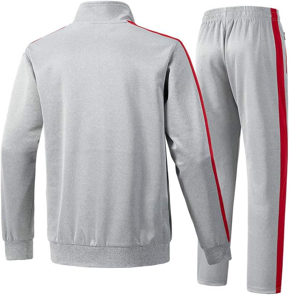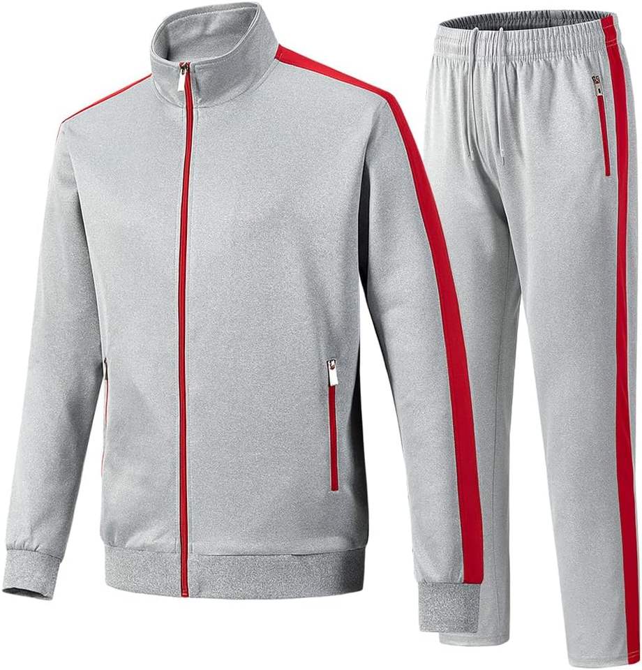 ชุดกีฬาผ้าฝ้ายแท้ 100% แบบสั่งทำพิเศษ ลายทางสีเทาและสีแดง สำหรับฤดูหนาว เหมาะสำหรับออกกำลังกายที่ยิมและกิจกรรมกลางแจ้ง