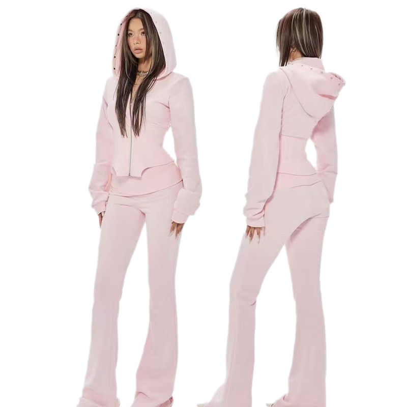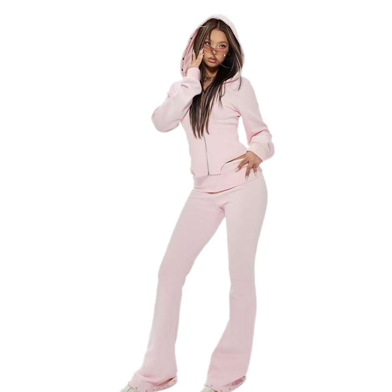 ชุดวอร์มผู้หญิงผ้าฝ้าย 100% แบบสั่งทำ กางเกงขายาวทรงบาน เสื้อฮู้ดดี้ ชุดลำลอง บริการ OEM