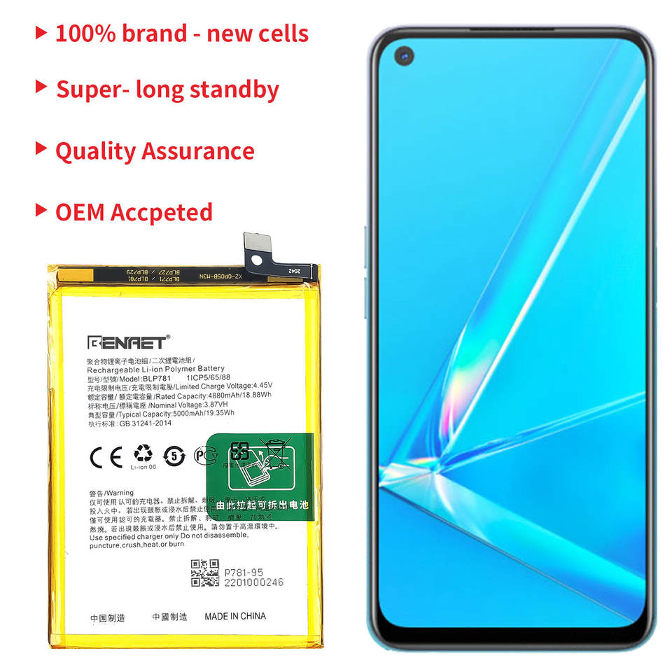 แบตเตอรี่ BLP781 5000mAh 100% A52ได้ตามต้องการสำหรับ OPPO A92แบตเตอรี่สมาร์ทโฟน BLP781