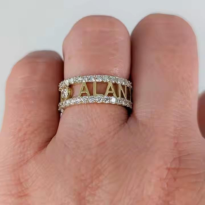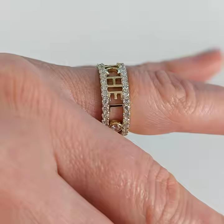 แหวนเพชรแบบกำหนดเอง14K สีเหลืองทองตลอดกาลแหวน Vermeil แบบอักษรสำหรับวันที่มีสัญลักษณ์ชื่อเลขโรมันแหวนเครื่องประดับเพชรสำหรับแลป