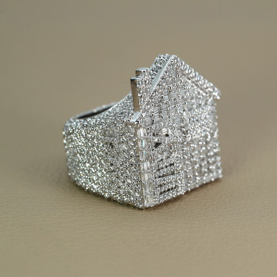 แหวนฮิปฮอปสีทองสีขาว14kt ออกแบบได้ตามต้องการสำหรับผู้ชายสไตล์ใหม่ที่มีเสน่ห์ในห้องแล็บปลูกเพชรคมชัด VVS งานแต่งงาน