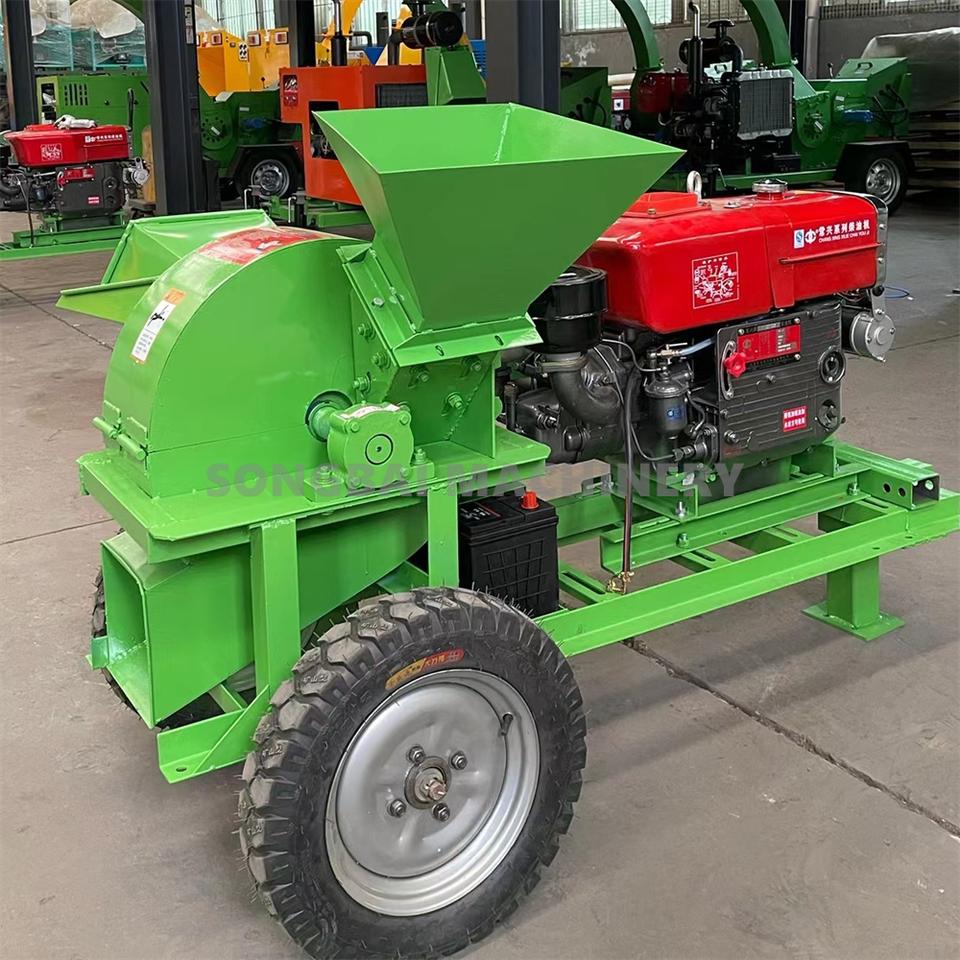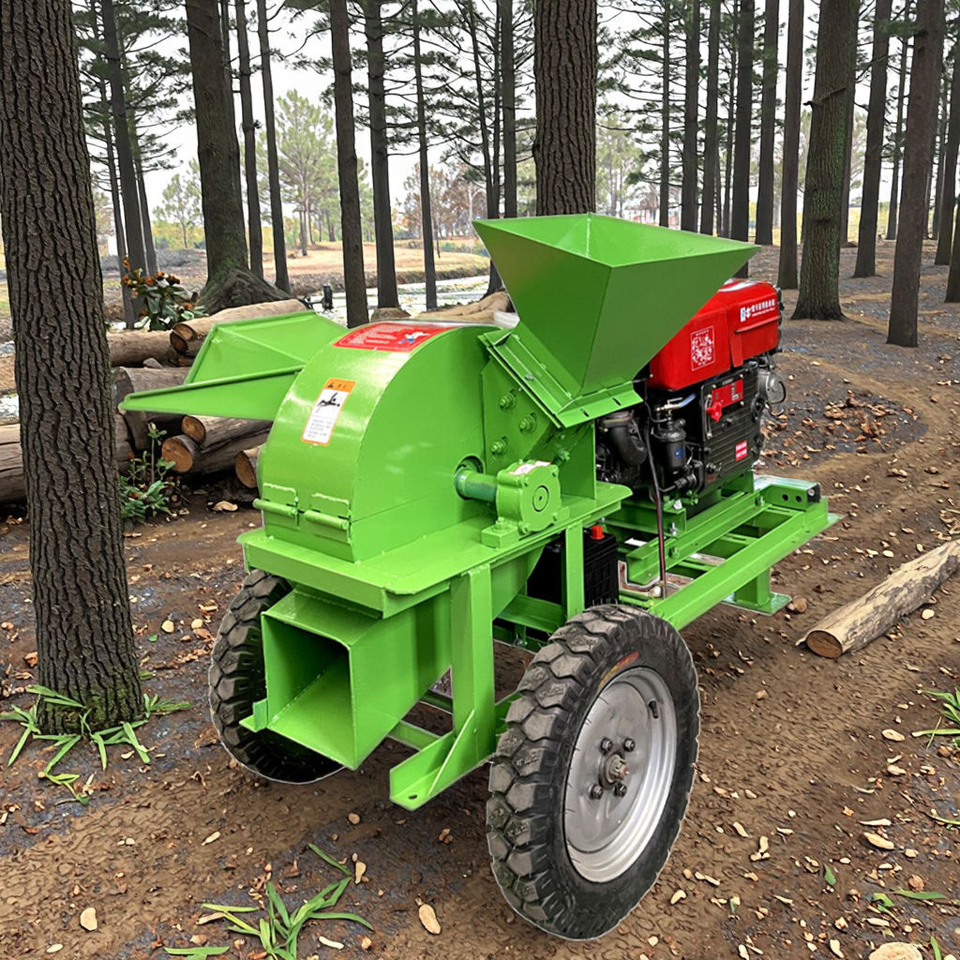 เครื่องหั่นย่อยไม้แบบเคลื่อนที่ได้เครื่องย่อยไม้15hp ดีเซลแบบปรับแต่งได้ตามต้องการเครื่องสับหญ้ากิ่งไม้ที่มีประสิทธิภาพ