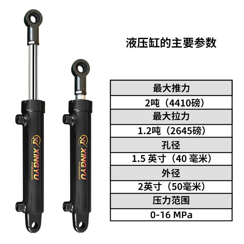 กระบอกไฮดรอลิกแบบสองทิศทางขนาดเล็ก HSG 2 ตัน แบบกำหนดเอง พร้อมอุปกรณ์เสริมน้ำมันด้านบน สำหรับงานวิศวกรรมการเกษตรแบบสองหู