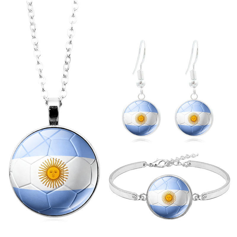 ชุดเครื่องประดับสามชิ้น สร้อยคอ สร้อยข้อมือ ต่างหู รูปธงฟุตบอล ประดับคริสตัล โลหะผสม รุ่นสั่งทำพิเศษ ปี 2026