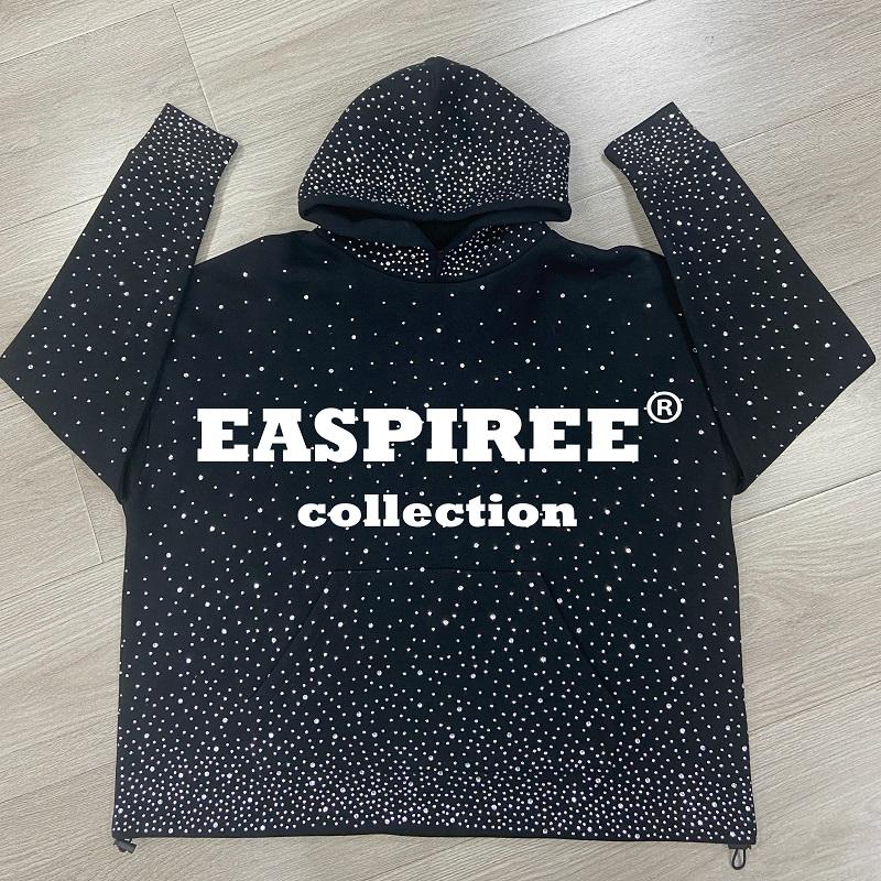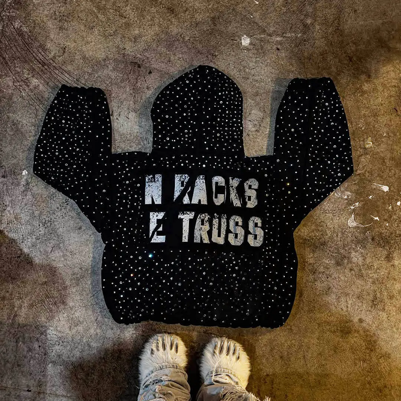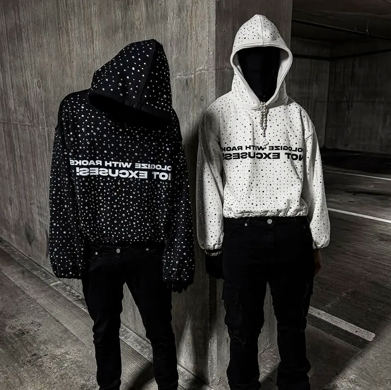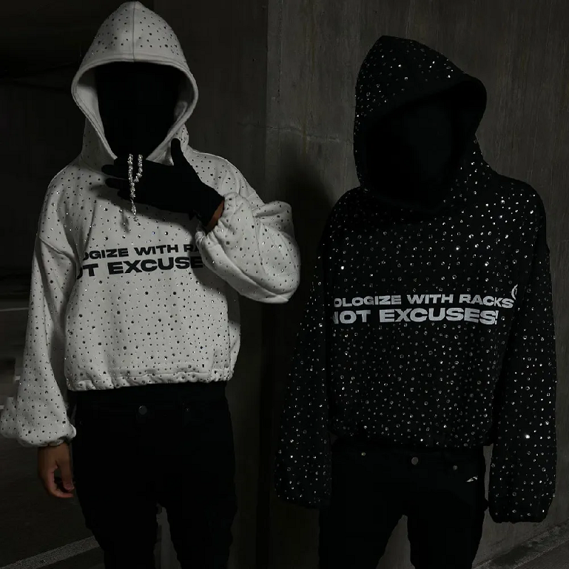 เสื้อฮู้ดดี้ผู้ชายแบบสตรีทแวร์ปี 2026 ตกแต่งด้วยคริสตัลทั้งตัว ปักลาย ทรงโอเวอร์ไซส์ ทรงบ็อกซี่ ซิปหน้า
