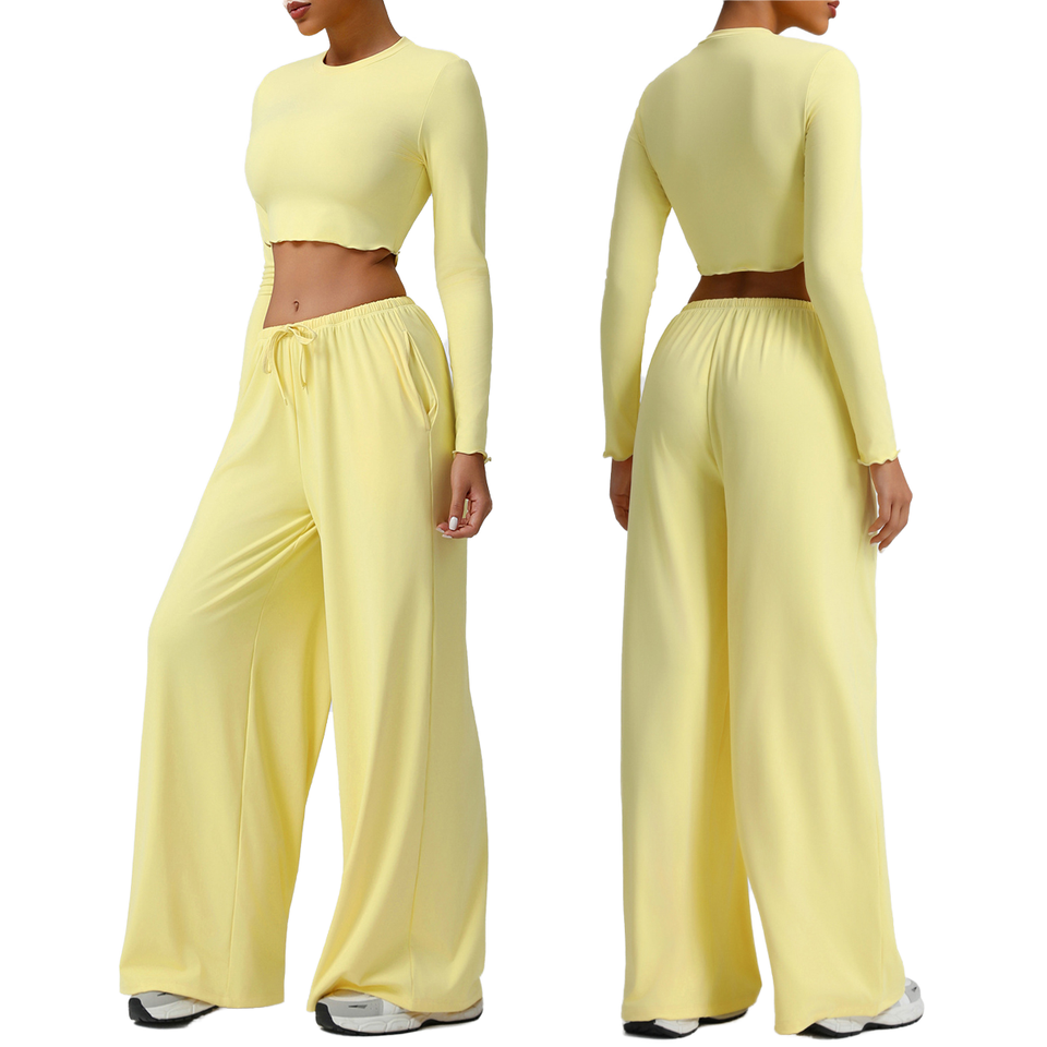 ชุดออกกำลังกายแบบ 2 ชิ้นสำหรับผู้หญิงไซส์พลัส ปี 2026 แบบสั่งทำพิเศษ กางเกงขายาวทรงหลวม เสื้อครอปท็อป ชุดโยคะ