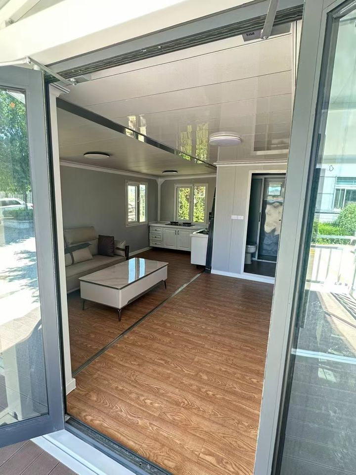 ตู้คอนเทนเนอร์โครงเหล็กแบบโมดูลาร์พับได้และขยายได้20FT 40ft 30ft แบบกำหนดเองบ้านพร้อมห้องน้ำ
