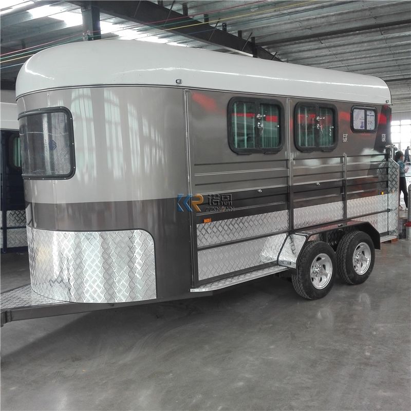 รถพ่วงเหล็กบรรทุกม้าแบบปรับแต่งได้ 3 ตัว พร้อมตู้เก็บของแบบ Deluxe ได้รับการรับรองมาตรฐาน CE ของออสเตรเลีย รองรับน้ำหนักสูงสุด 1700 กก. สำหรับรถบรรทุก