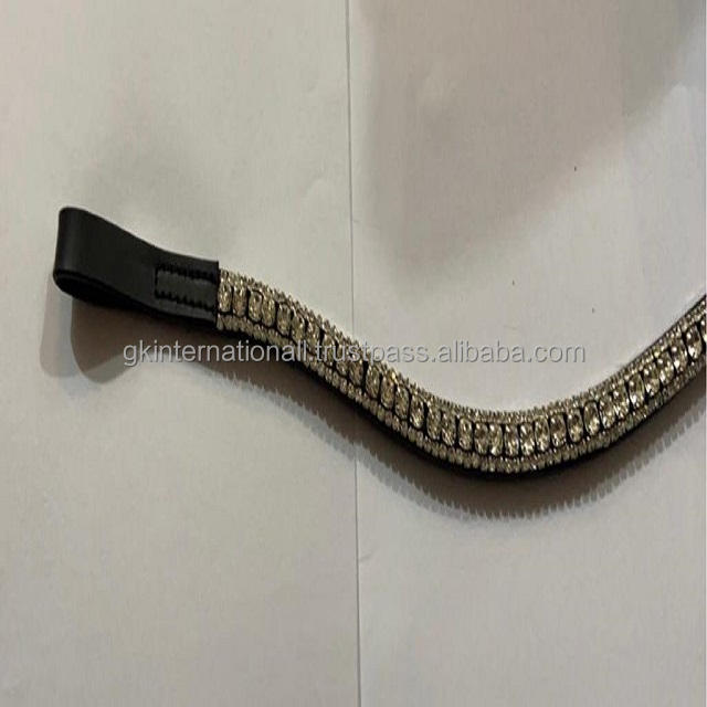 ที่กำหนดเอง3แถวเศษไม้ประกายคริสตัล Diamante Bling คุณภาพฝีมือหนังแท้สีดำม้าคิ้ววงในซังเต็ม