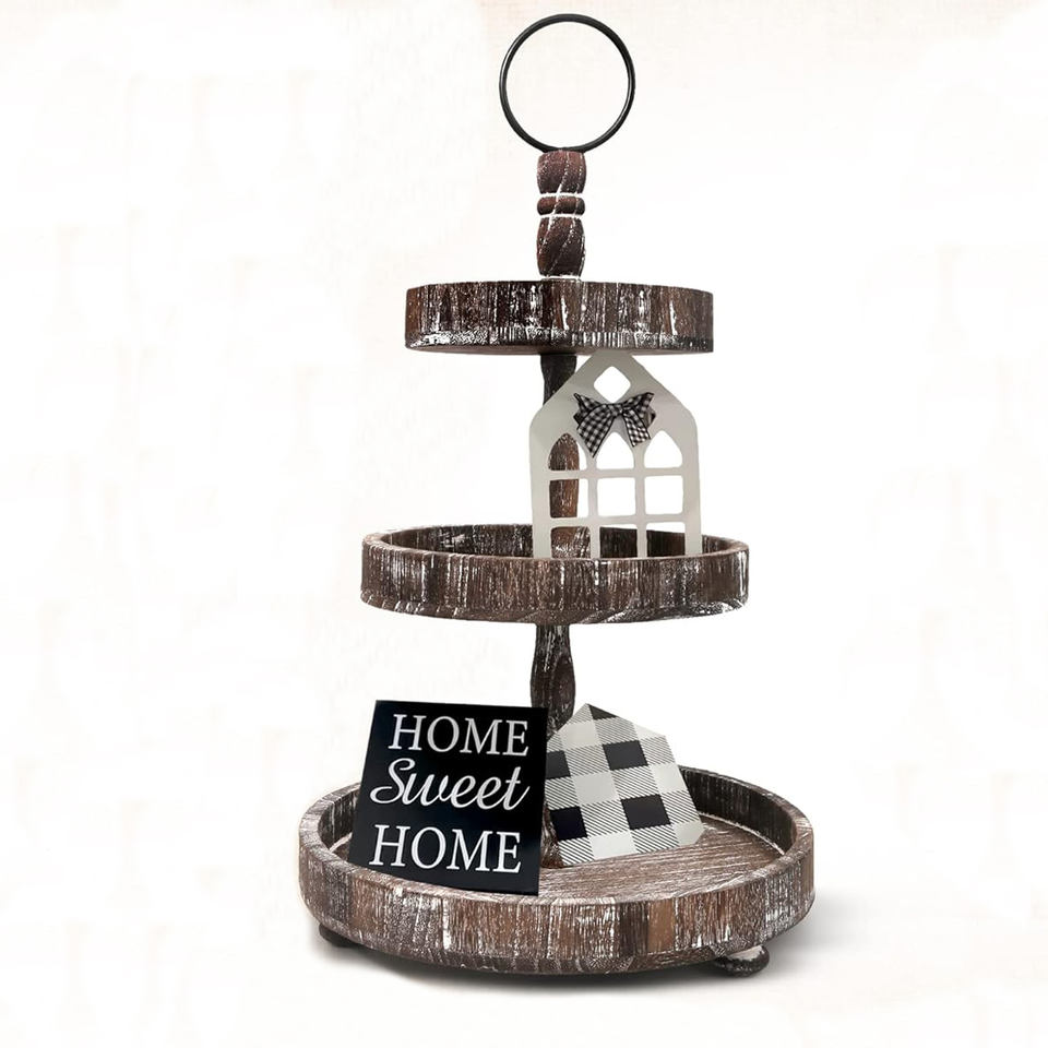 Wooden 3 Tier Tray with Metal HandlesProduct Name