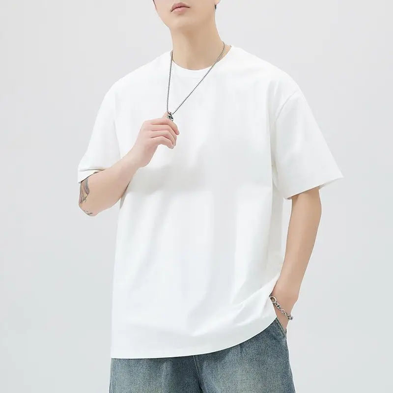 เสื้อยืดผู้ชายแบบครึ่งแขนทรงโอเวอร์ไซส์หนาพิเศษ 300 กรัม ดีไซน์เฉพาะตัว และเสื้อยืดคอกลมทรงหลวมสำหรับฤดูร้อน ขายส่ง