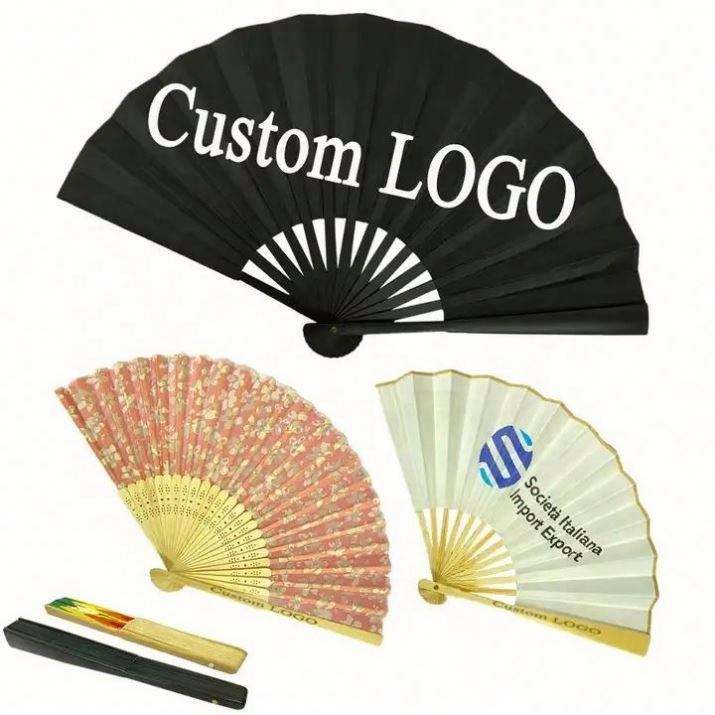 Customized 33cm Black Bamboo Folding Hand Fan Chinese Vintage Style with Painted Technique Quality Business Gift