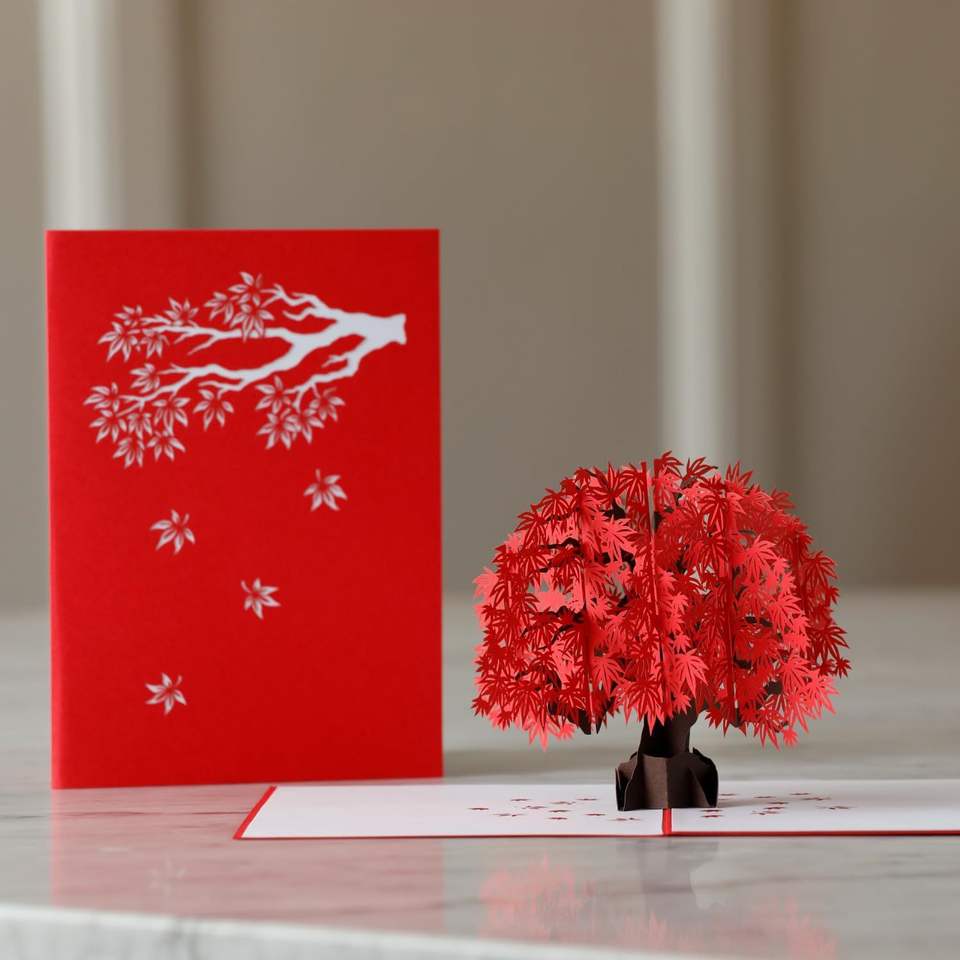 การ์ดอวยพรป๊อปอัปแบบ3D งานแฮนด์เมดศิลปะกระดาษสีชมพูเชอร์รี่การ์ดของขวัญสำหรับเพื่อน
