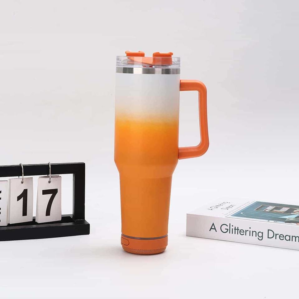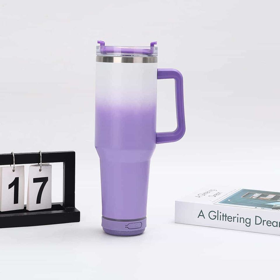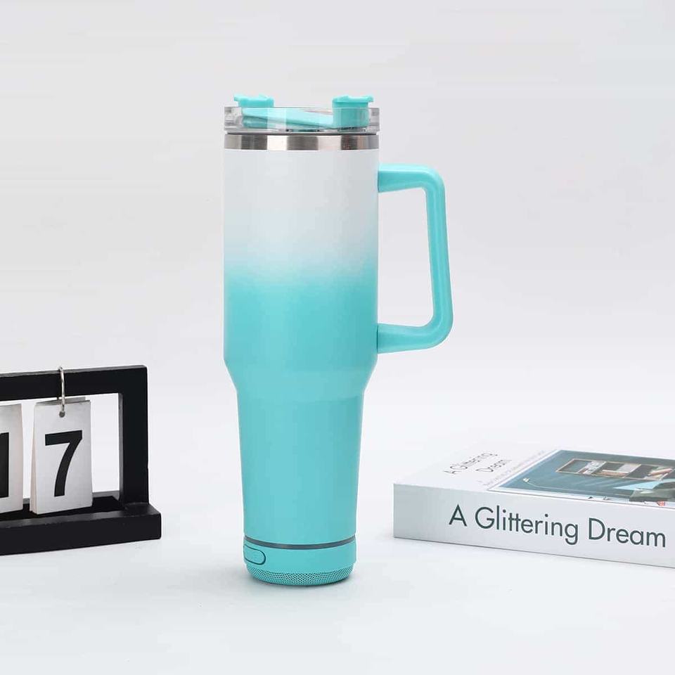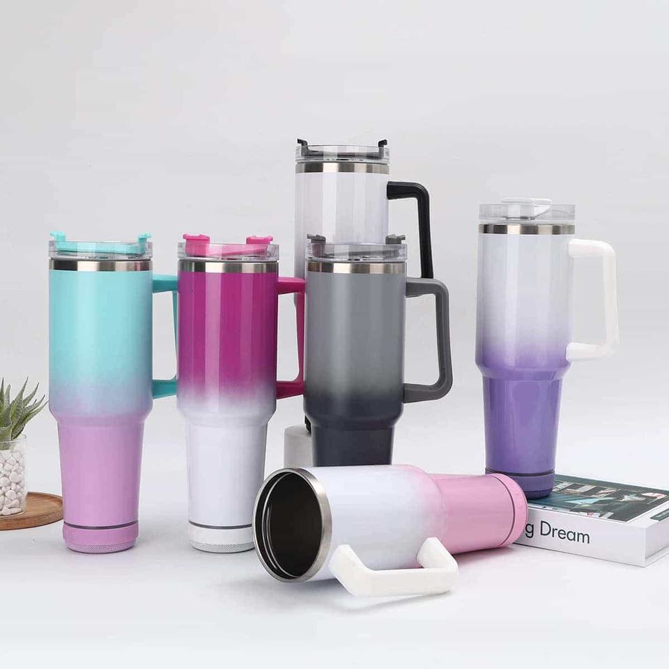 แก้วน้ำเก็บความร้อนสุญญากาศแบบมีบลูทูธ ขนาด 40 ออนซ์ ลายไล่สี ผลิตตามสั่ง วัสดุสแตนเลส 304 ป้องกันการรั่วซึม ผนังสองชั้น เก็บความร้อนได้ถึงน้ำเดือด