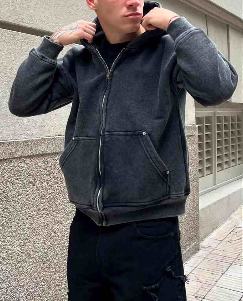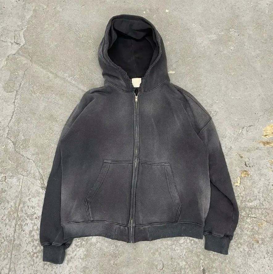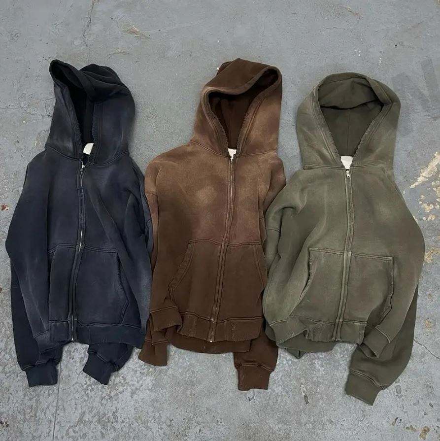เสื้อฮู้ดซิปรูดซิปใส่ได้ทั้งชายและหญิงเสื้อสเวตเชิ้ตเฟรนช์เทอร์รี่เสื้อมีซิปแบบมีฮู้ดผ้าซับในแบบวินเทจเสื้อมี480GSM สั่งพิมพ์ลายลิงซักได้