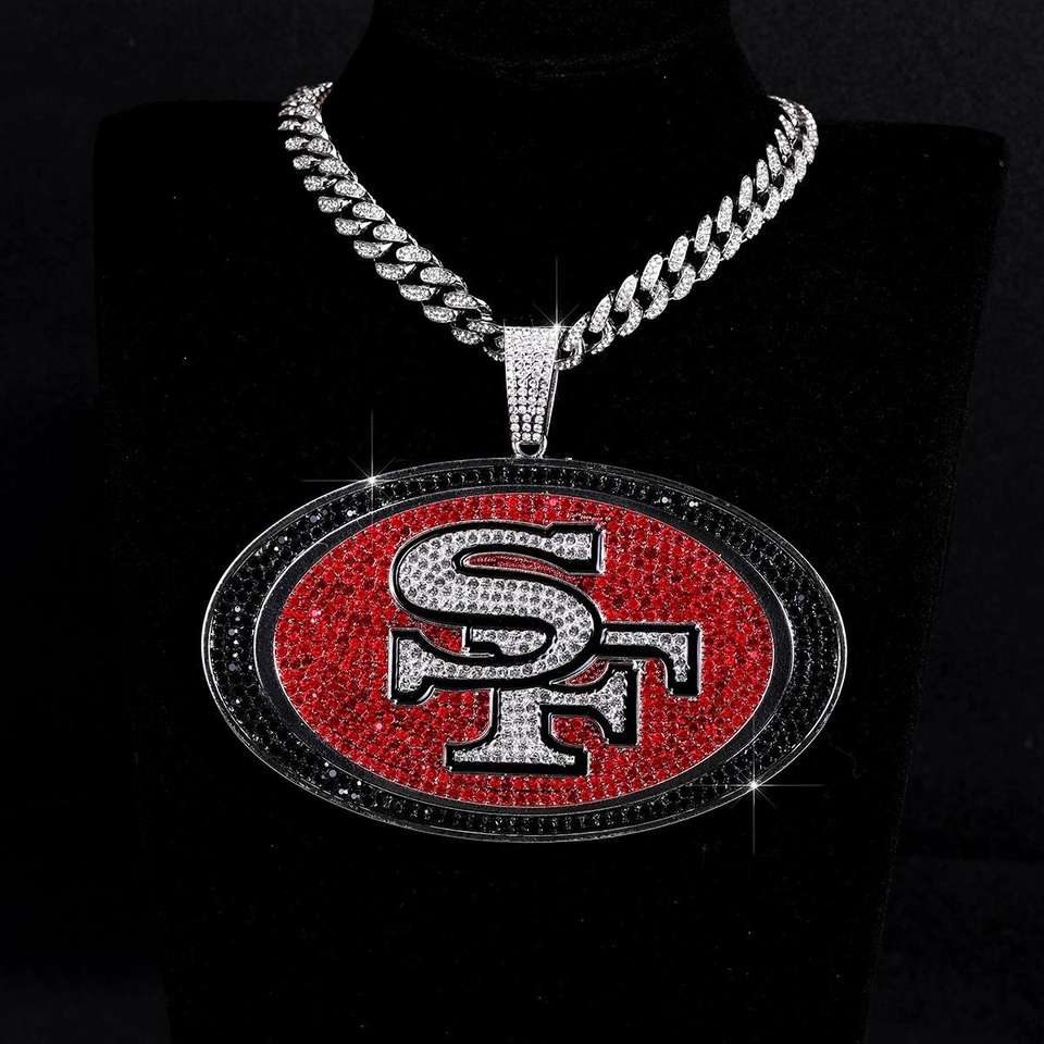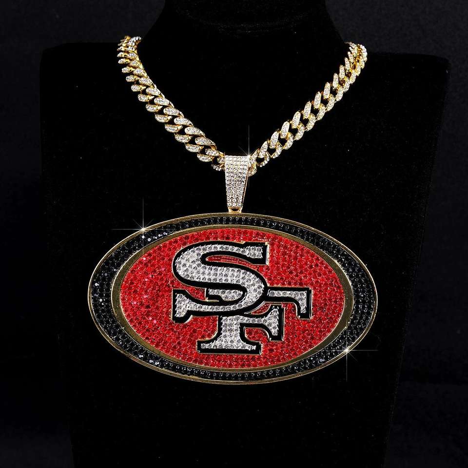 จี้แชมป์ NFL 49ers แบบสั่งทำพิเศษ ขนาดใหญ่พิเศษ เงินแท้ 925 ชุบโรเดียม/ทอง 14K ประดับโมอิสซาไนต์สีดำแดงเต็มวง สไตล์ฮิปฮอป