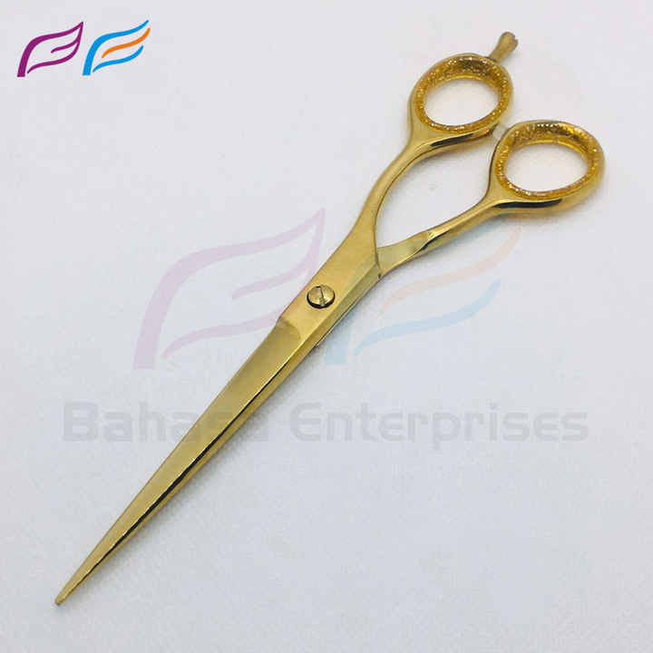 กรรไกรตัดผมสแตนเลสขอบตรงขนาด5นิ้วสีทองสำหรับร้านเสริมสวยมืออาชีพงานตามสั่ง