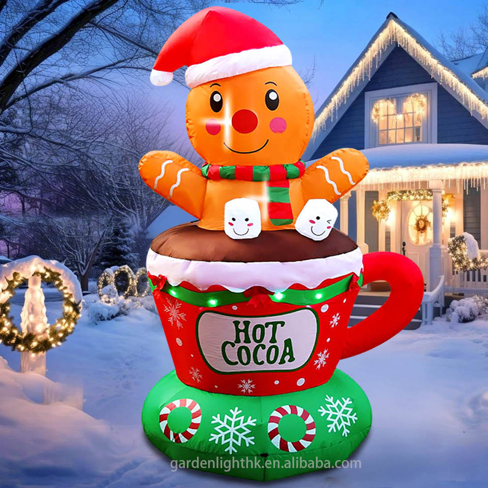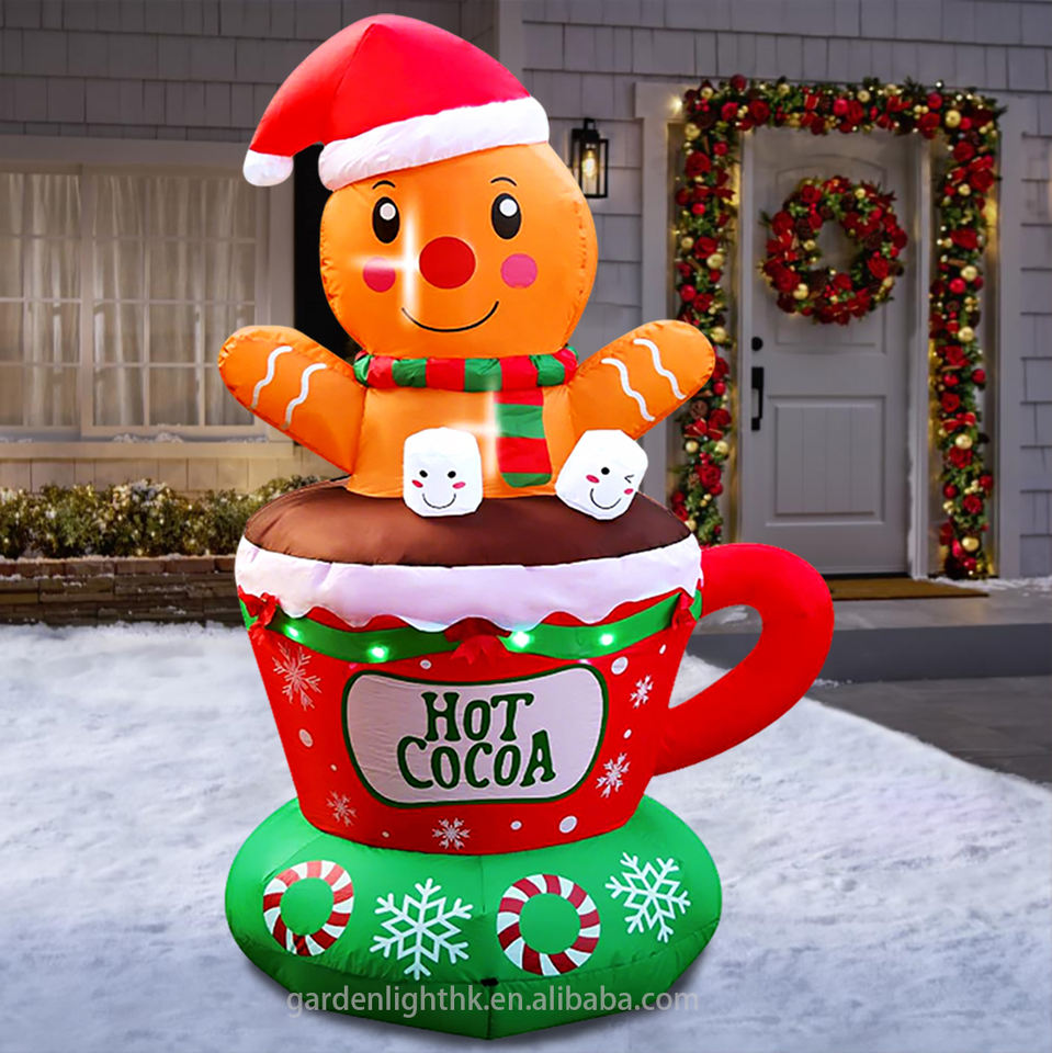 6FT ขนมปังขิงมนุษย์ถ้วยโกโก้ร้อนในร่ม/กลางแจ้ง IP44 LED กันน้ำสำหรับบ้านวันหยุดปาร์ตี้"