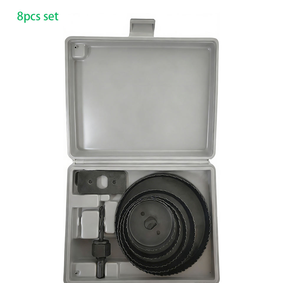 ชุดเครื่องมือเจาะรู 8 ชิ้น แบบกำหนดเอง ทำจากเหล็กกล้าคาร์บอนสูง สำหรับเจาะผนังยิปซัม พลาสติก และไม้ ปรับขนาดเส้นผ่านศูนย์กลางรูได้ตามต้องการ