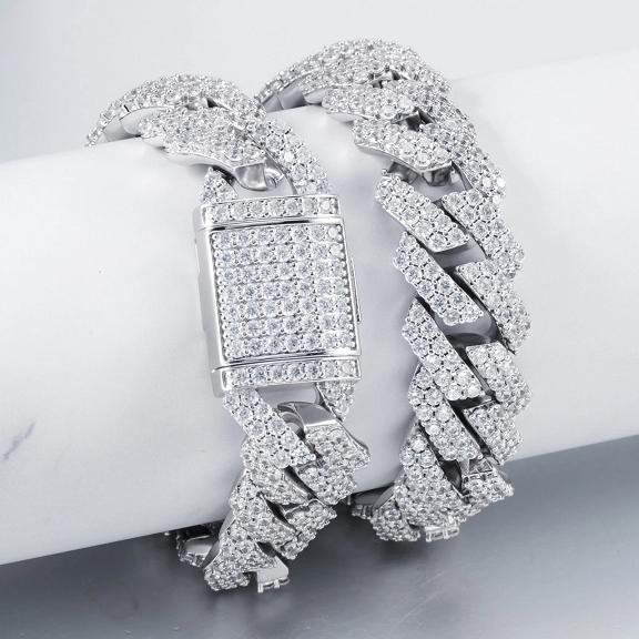 สร้อยคอเงิน 925 ลายคิวบันลิงค์ ประดับเพชรโมอิส
