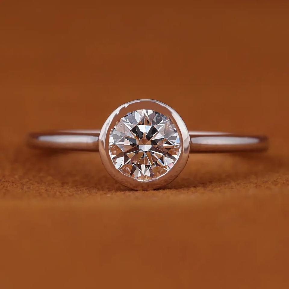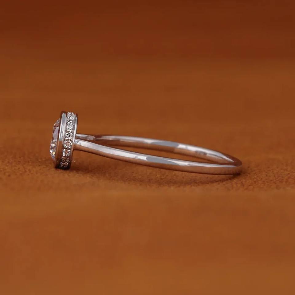 แหวนหมั้นเงินแท้ 925 แบบสั่งทำพิเศษ ประดับเพชรโมอิสซาไนต์ทรงกลม รับรองโดย GIA ตัวเรือนแบบ Bezel Setting สไตล์ฮิปฮอป เหมาะสำหรับเป็นของขวัญ