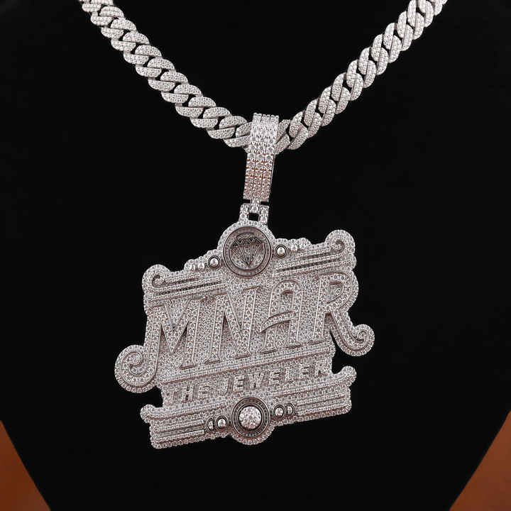 จี้เงินแท้ 925 ชุบทอง 18K ประดับเพชรโมอิสซาไนต์เต็มตัว ดีไซน์ MNAR แบบกำหนดเองได้ เหมาะสำหรับทั้งชายและหญิง สไตล์ฮิปฮอป ของขวัญสุดพิเศษ