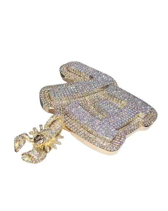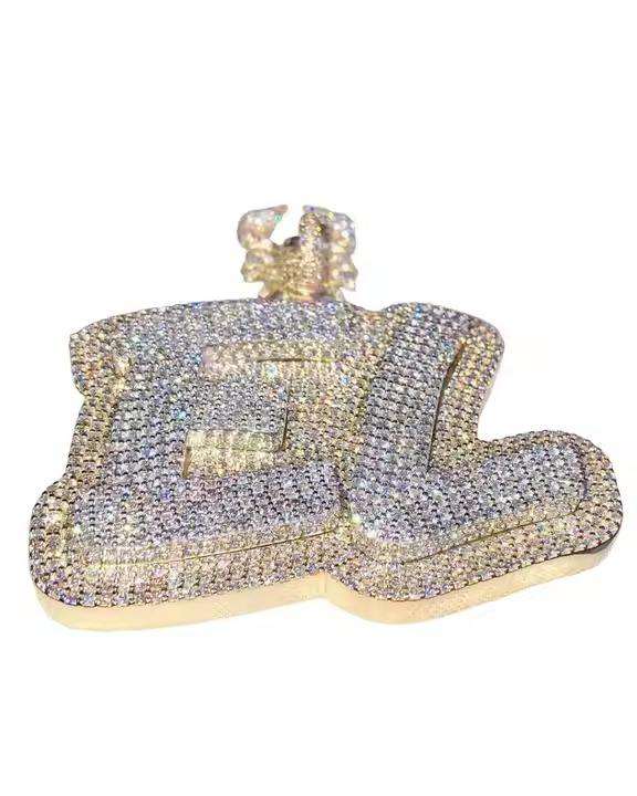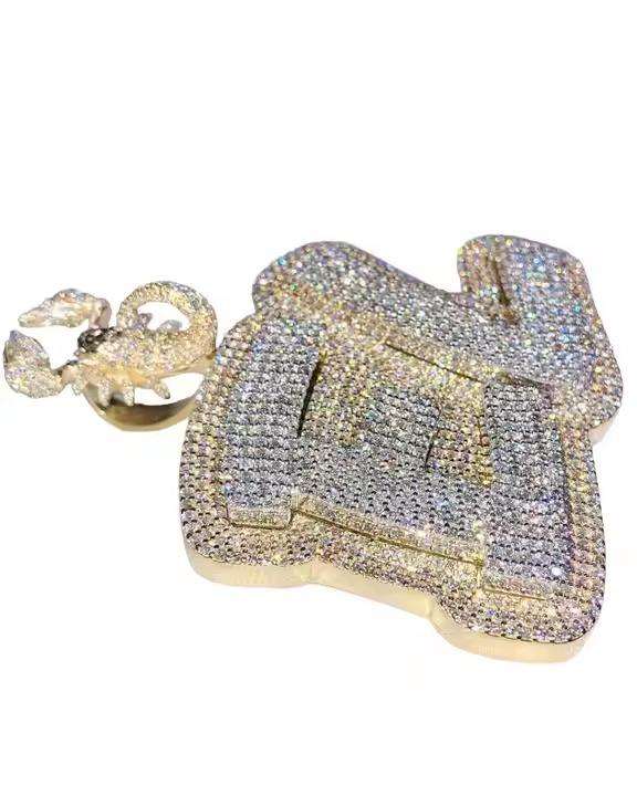 จี้เงินแท้ 925 รูปตัว 'P' ประดับเพชรโมอิสซาไนต์ VVS ชุบทอง สไตล์ฮิปฮอป งานฝีมือประณีต ของขวัญเครื่องประดับสุดหรู