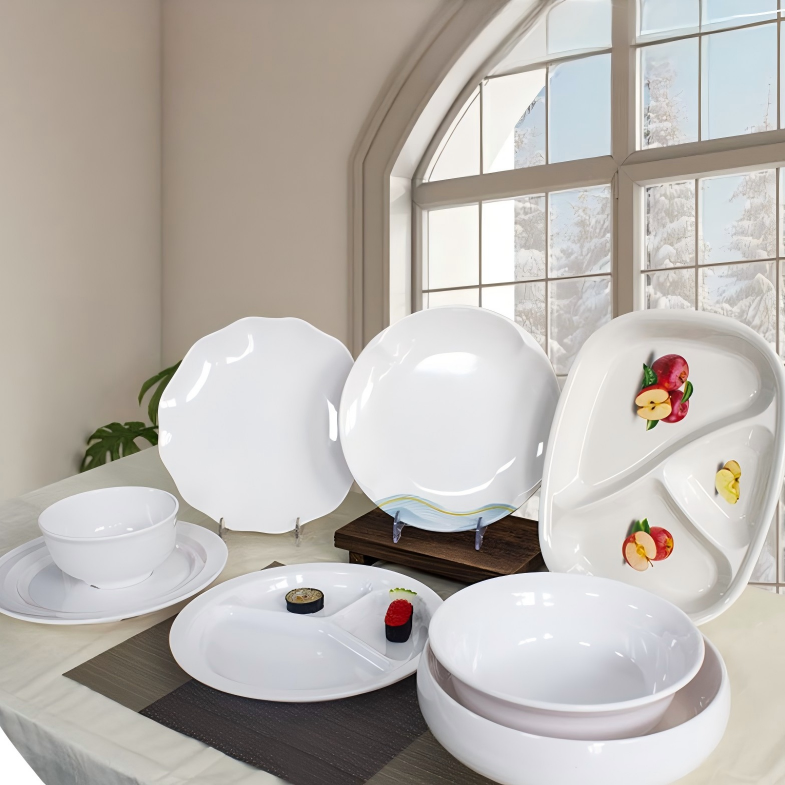 ชุดภาชนะเมลามีน A5 แบบกำหนดเองได้ หลายช่องใส่ ชามซุป เกรดอาหาร ใช้กับเครื่องล้างจานได้ เหมาะสำหรับร้านอาหารและครอบครัว