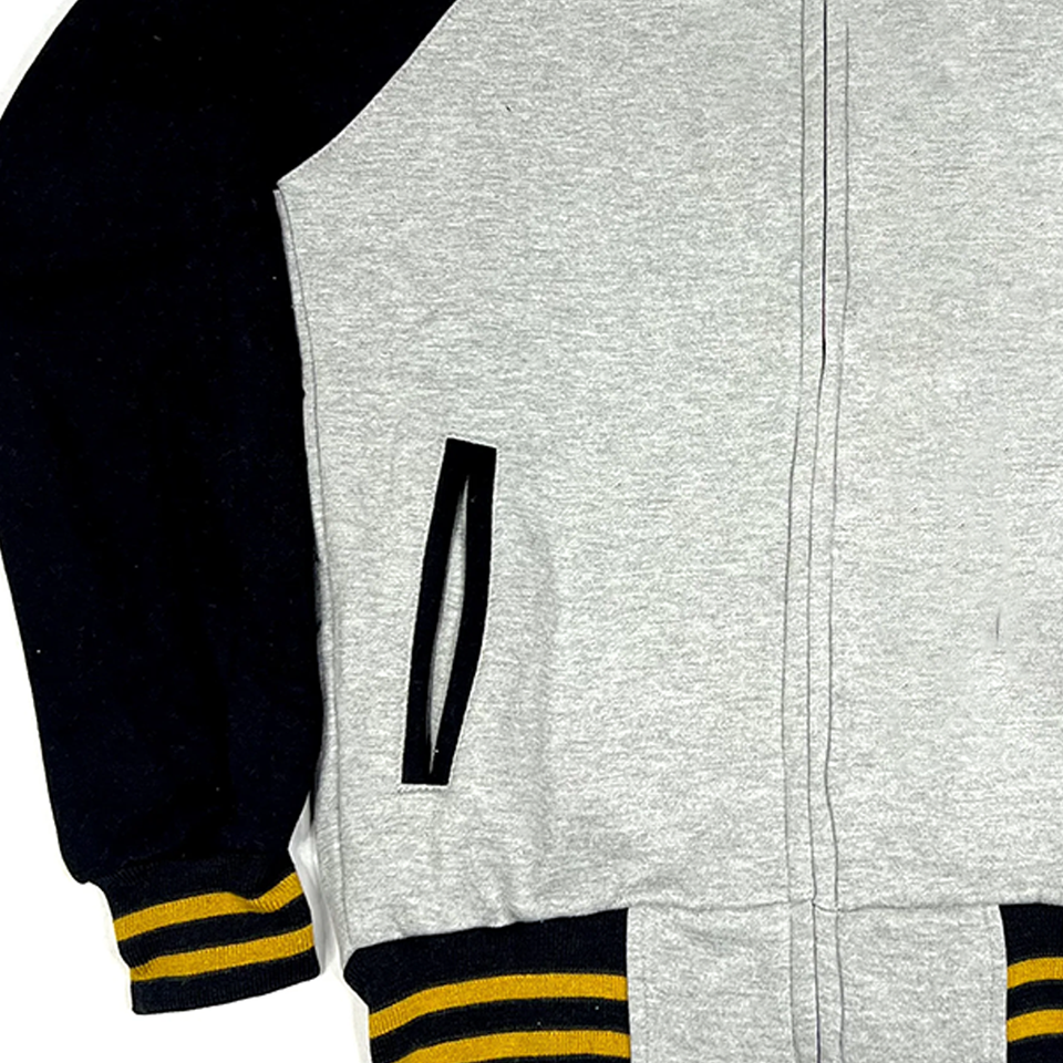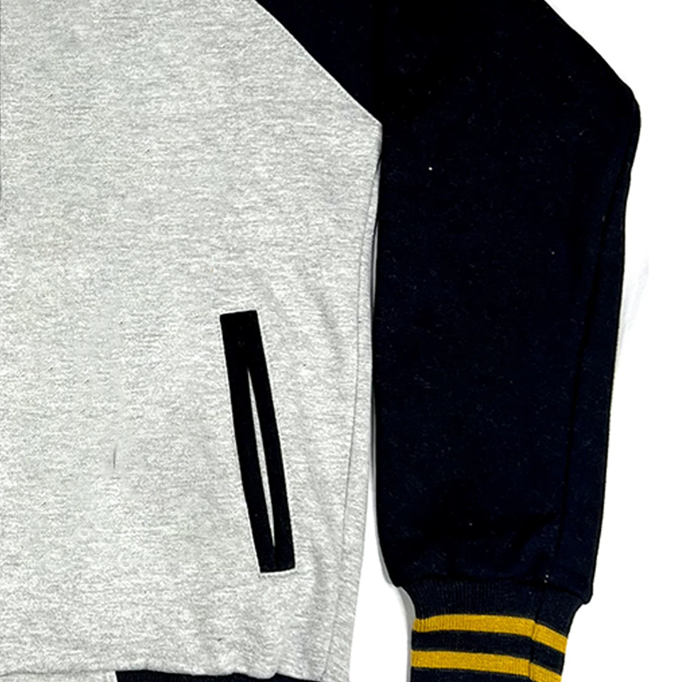 เสื้อแจ็คเก็ตฟลีซวาร์ซิตี้สีเทาอ่อนแบบกำหนดเอง APA | เสื้อแจ็คเก็ตบอมเบอร์สำหรับสมาคมนักศึกษา | เสื้อผ้าสตรีทแวร์แนวสตรีทสุดเท่ห์สำหรับมหาวิทยาลัย