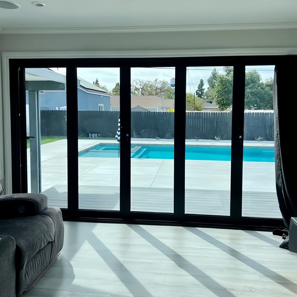 ประตูบานเลื่อนอลูมิเนียมพับได้กระจกนิรภัยสองชั้นสำหรับภายนอกระเบียง