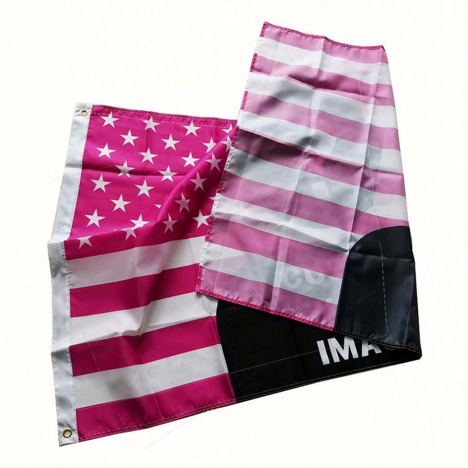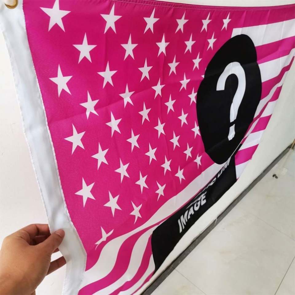 ธงแขวนโพลีเอสเตอร์ขนาด 3x5 ฟุต แบบกำหนดเองสำหรับหอพักอเมริกัน สีชมพู พร้อมเพิ่มข้อความ