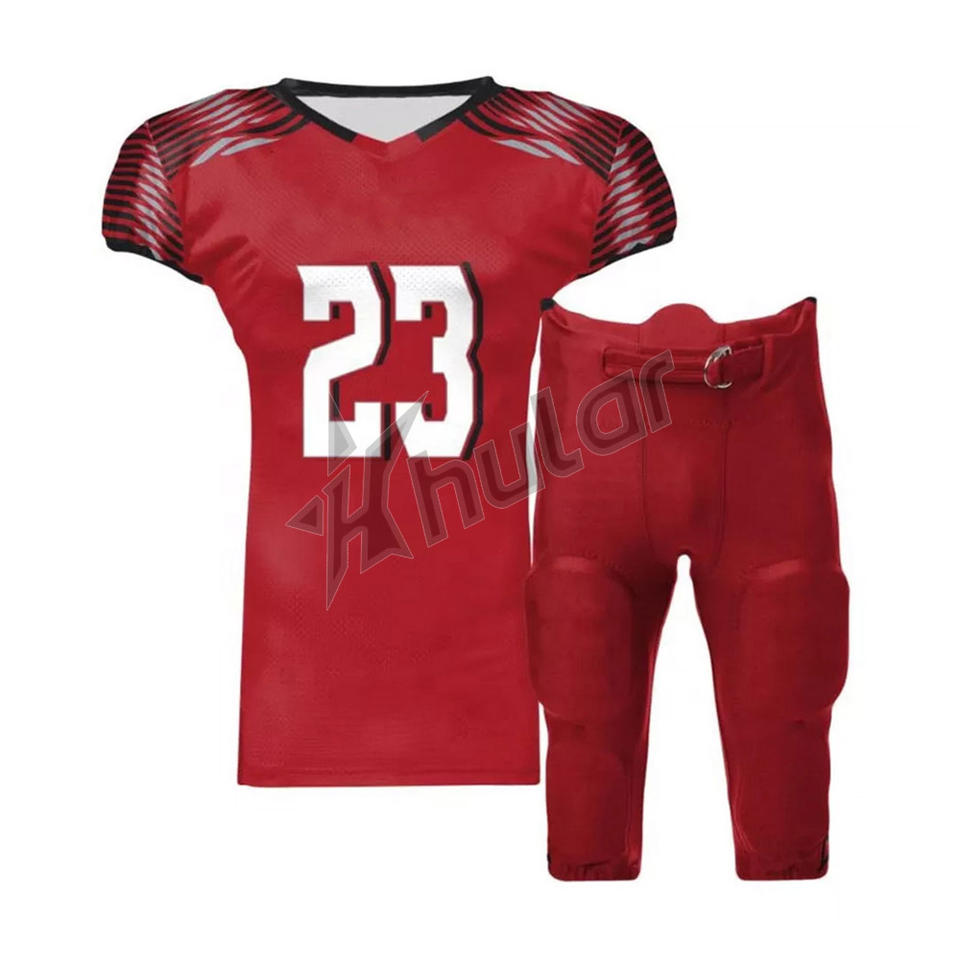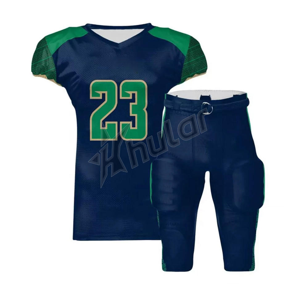 ชุดฟุตบอลอเมริกันแบบสั่งทำชุดเสื้อทีมฟุตบอลแบบระเหิดคุณภาพสูง OEM สินค้าต่างประเทศ