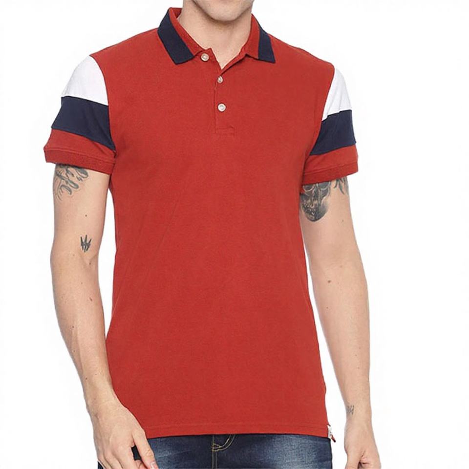 เสื้อกอล์ฟผู้ชายทรงหลวมแบบลำลอง ปักลายป้องกันริ้วรอย ผ้าถักเนื้อแน่น แขนสั้น ผสมสแปนเด็กซ์/คอตตอน