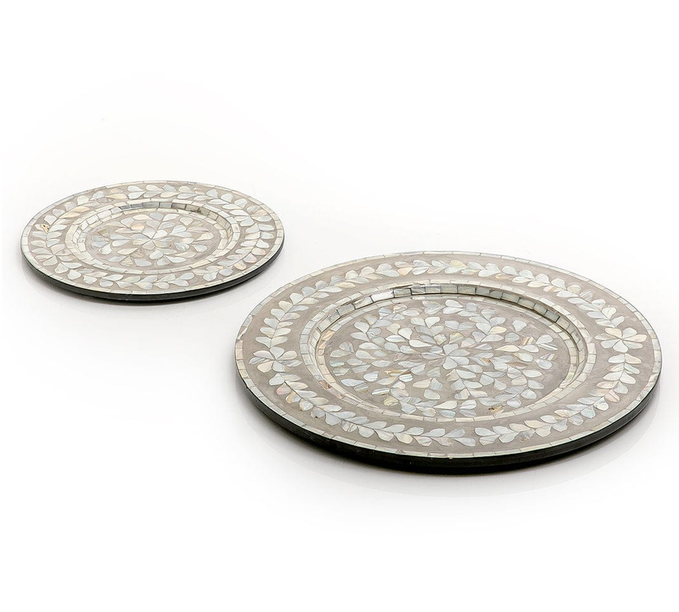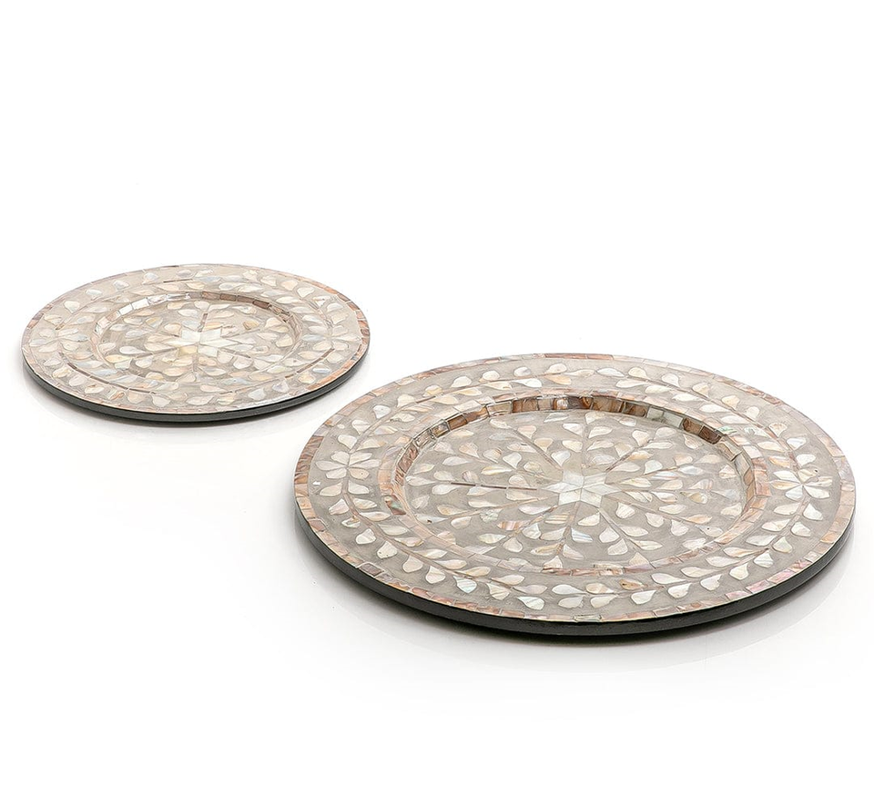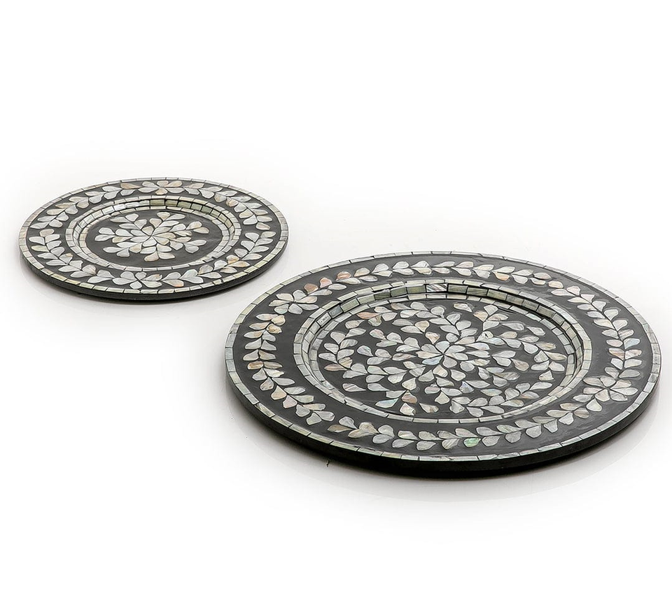 ถาดเสิร์ฟและเก็บของสไตล์โบราณแบบสั่งทำพิเศษ ทำจากเรซิ่นประดับมุกแท้ พร้อมถาดไม้สำหรับใส่ช็อกโกแลตและอินทผลัม