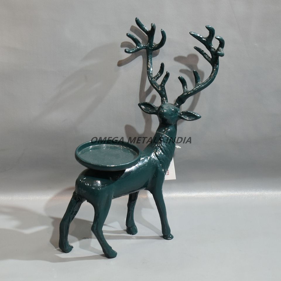 Customized Artistic Metal Reindeer Ornament with Unique Deep Green Finish and Built-in Holder for Holiday Decorative Display