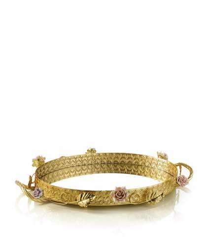 ถาดใส่อาหารสติกเกอร์สำหรับเสิร์ฟพร้อมที่จับเคลือบสีทองออกแบบได้ตามต้องการ