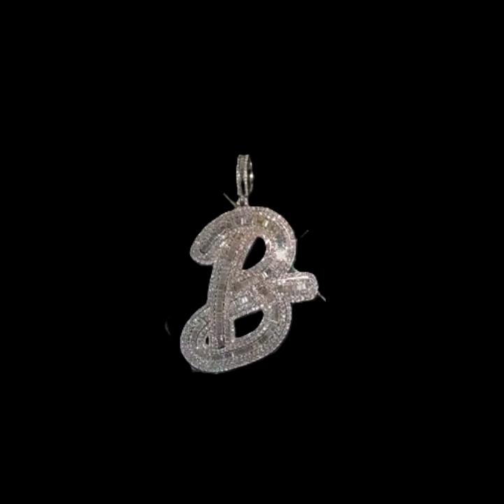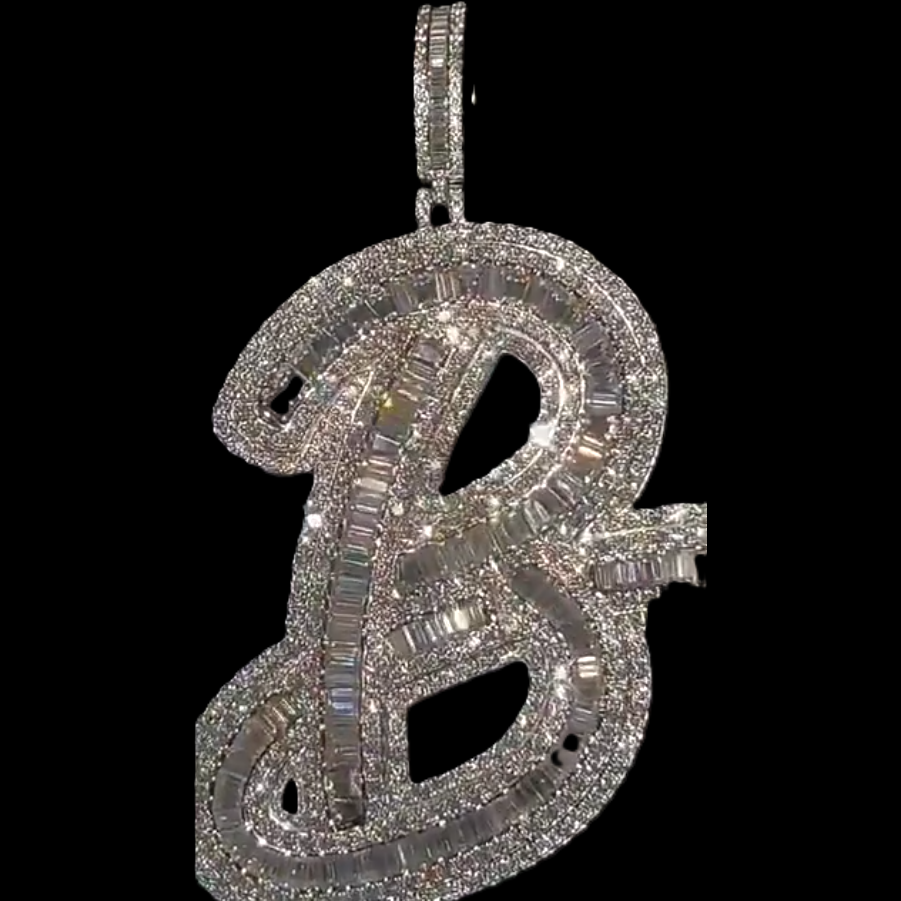 จี้เพชรทรงบาแกตต์ตัดตัวอักษรบีที่มีสเน่ห์จี้เพชรโมอิสซาไนต์สำหรับผู้ชายผู้หญิง