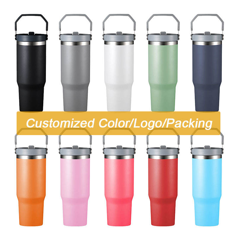 แก้วน้ำแบบพกพาพร้อมหูจับ ป้องกันการรั่วซึม ขนาด 20 ออนซ์ 30 ออนซ์ ผลิตจากสแตนเลสสตีล เก็บอุณหภูมิได้ ปราศจากสาร BPA พร้อมหลอดดูดแบบพับได้ ปรับแต่งได้