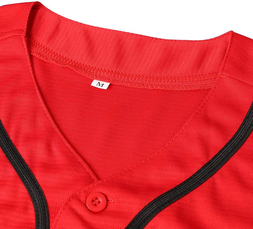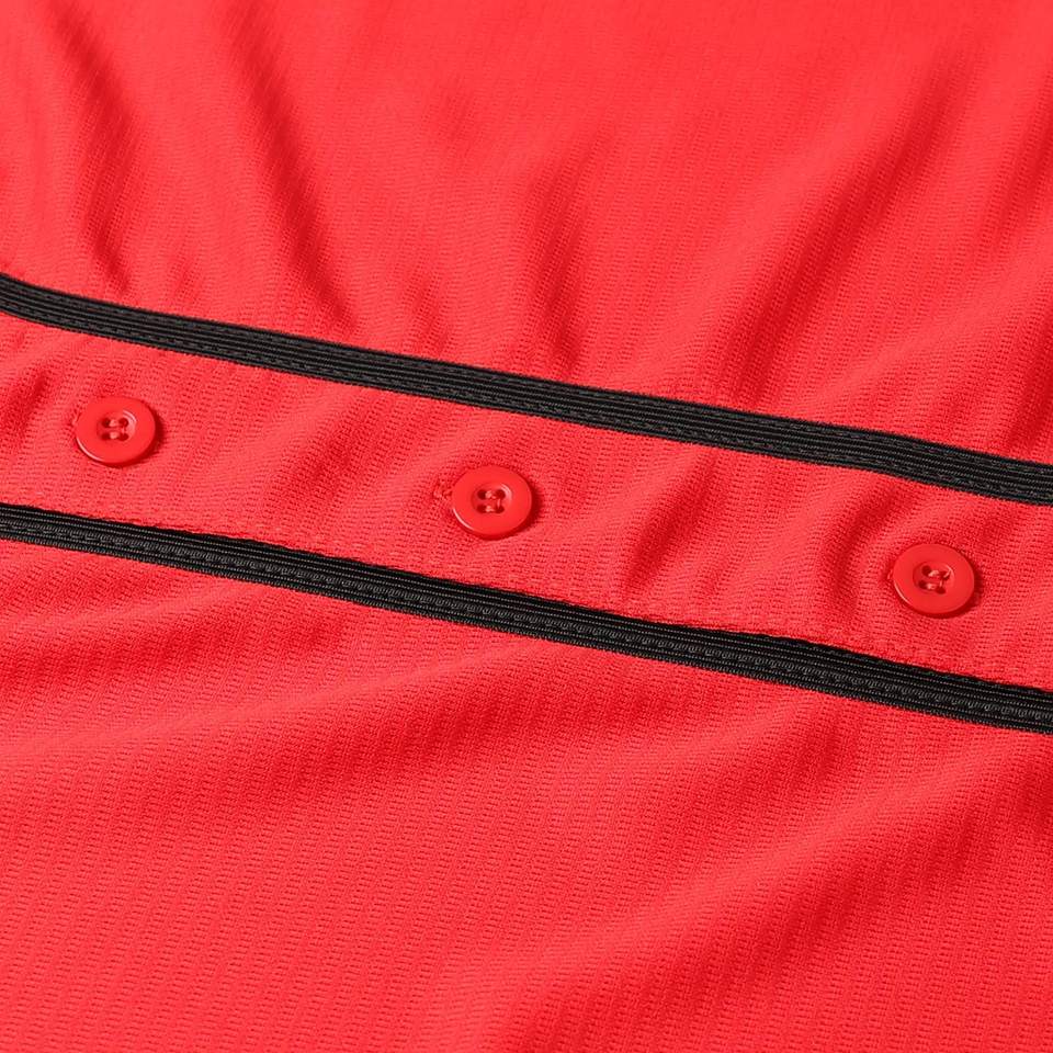 เสื้อเจอร์ซีย์เบสบอลและซอฟต์บอลสำหรับผู้ชายและผู้หญิงชุดกีฬาสีแดงลายว่างเปล่า
