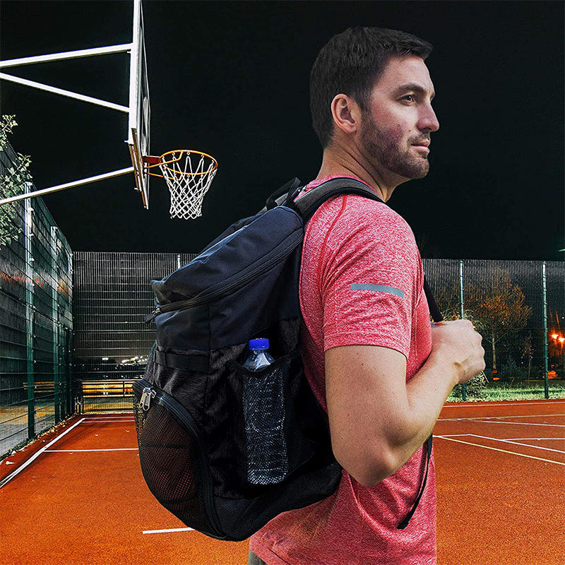 กระเป๋าเป้สะพายหลังกีฬาแบบกำหนดเองสำหรับบาสเกตบอล วอลเลย์บอล ฟุตบอล ซอคเกอร์ ฟิตเนส ยิม พร้อมช่องใส่ขวดน้ำ