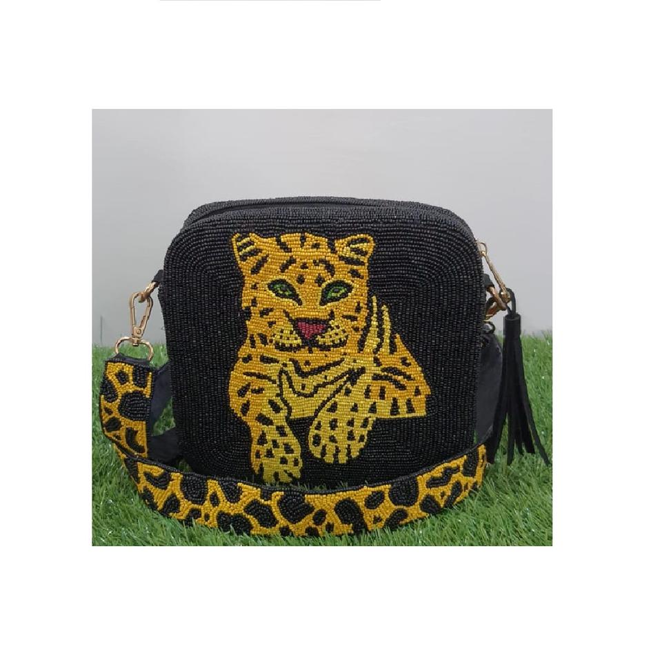 กระเป๋าถือสะพายข้างลายหน้าเสือประดับลูกปัดแบบสั่งทำพิเศษสำหรับผู้หญิง เหมาะสำหรับวันแข่งขันกีฬาและวันทั่วไป